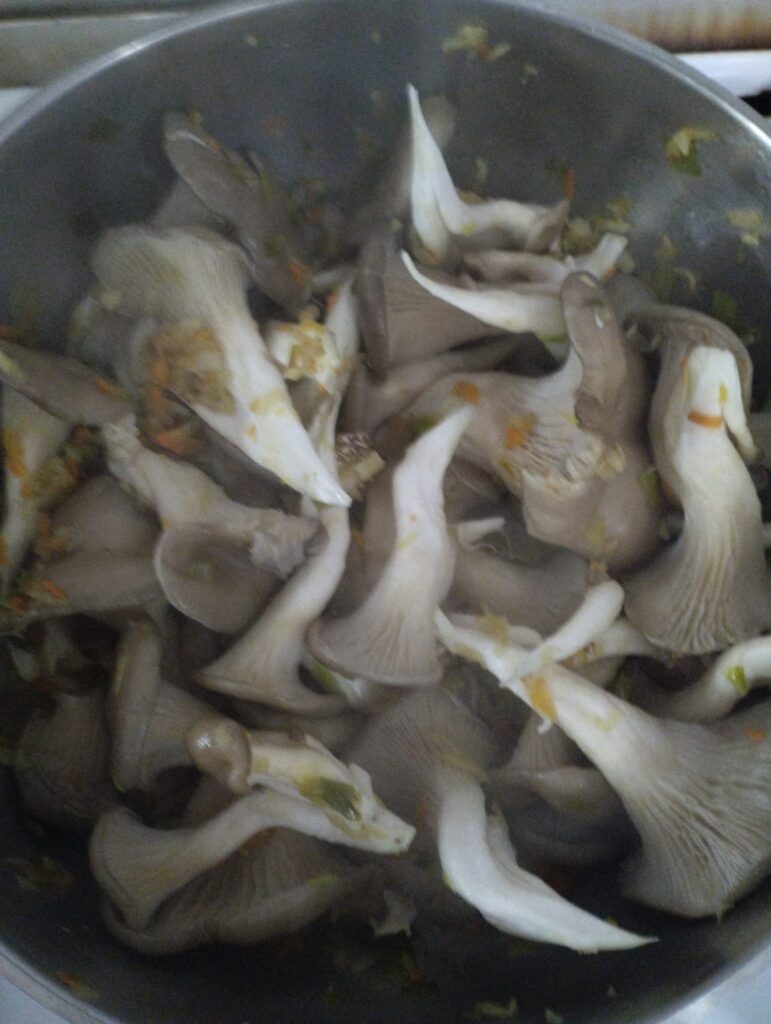 Bukovače nisu iz bašte, sa pijace su. Iscepkao sam ih na prirodno baš kako su srasle. Pomešao ih sa lukom i korenjem i pustio sve to da se dinsta. Na tiho, naravno.